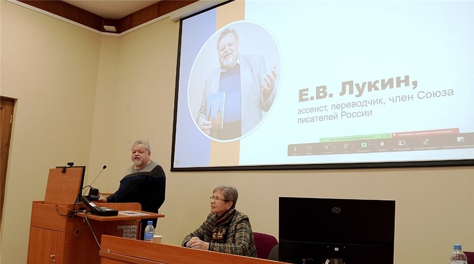 Евгений Лукин и ведущая конференции, кандидат исторических наук Елена Рудая