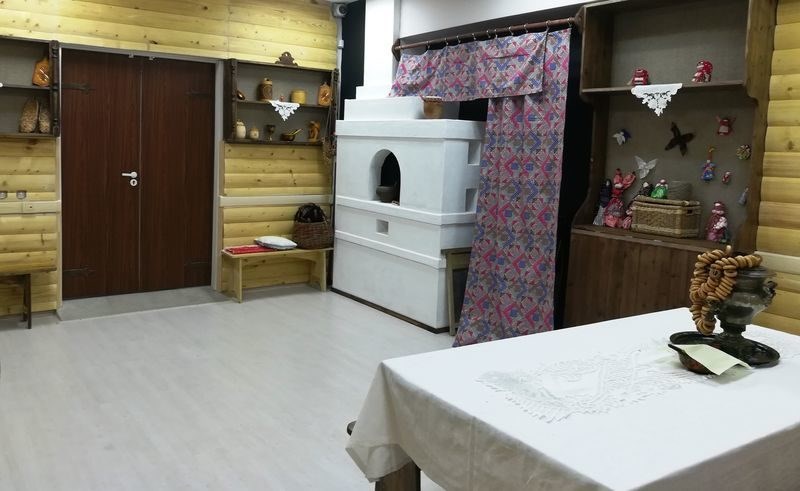 В стилизованной русской избе с бревенчатыми стенами, печкой, деревянными столом и лавками мастера клуба "Крупеничка" проводят различные праздники, а также мастер-классы по множеству видов декоративно-прикладного творчества. Особое место традиционно занимает изготовление игровых и обрядовых кукол. Экспозиция меняется в соответствии с народным календарем.