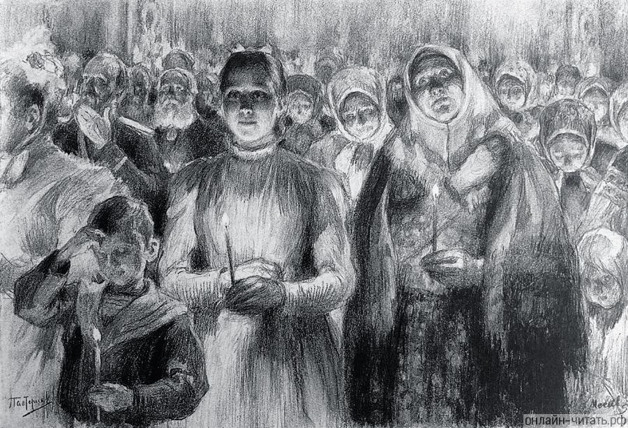 У заутрени. Иллюстрация Л.О. Пастернака к роману Л. Толстого "Воскресение". Фото: онлайн-читать.рф