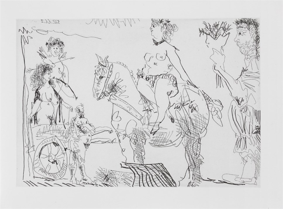 Пабло Пикассо. Офорт с акватинтой. Иллюстрация из издания Фернан Кроммелинк Великолепный рогоносец 1968