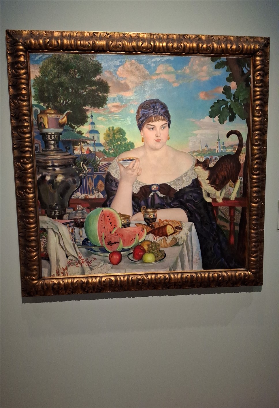 Вместе с тем — это не наив. Это тонкая режиссура. Кустодиев не просто изображал — он выстраивал кадр, точно зная, где зритель должен задержать взгляд. В его полотнах нет случайностей, всё подчинено внутреннему ритму.