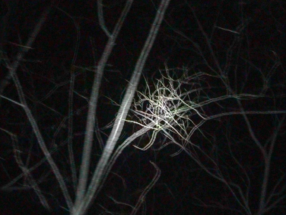 “В течение двух с половиной лет я фланировала ночами по разным частям Тропаревского лесопарка в разные времена года. Процесс фиксировался на любительскую видеокамеру. Затем я тщательно рассматривала видео и отдельные кадры. Множество освещенных фрагментов старались сложиться в единый пазл. Цифровая эстетика накладывалась на мои визуальные переживания... – рассказывает художник Лариса Федотова о создании проекта.