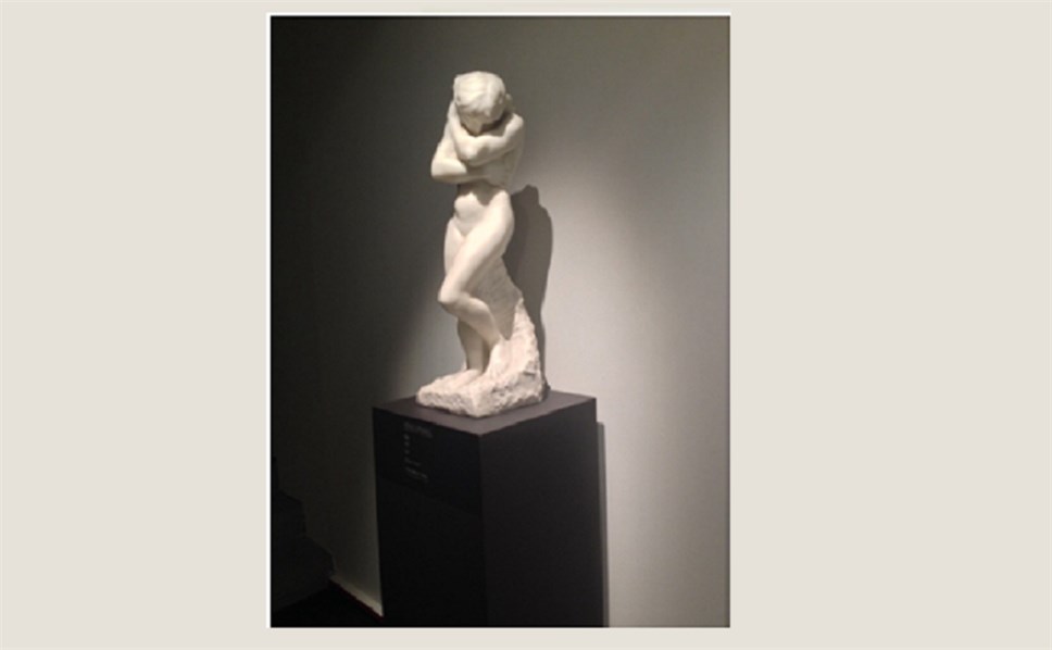 Выставку открывает скульптура "Ева" отца современной скульптуры – великого Огюста Родена. Белоснежная, прекрасная девушка закрывается от зрителя руками, будто бы смущаясь своей наготы. Рядом с ней расположились акварели – иллюстрации Родена к роману Октава Мирбо "Сад пыток", выполненные по заказу Амбруаза Мирбо. Это первые и единственные работы знаменитого мастера в жанре livred'artiste. В них прекрасно чувствуется и узнается неповторимый почерк Родена: обнаженная невинность, красота, которая не должна быть скрыта ничем. Не зря современники чрезвычайно высоко оценили иллюстрации, Аристид Майоль, например, даже отдавал им большее предпочтение по сравнению со скульптурами.