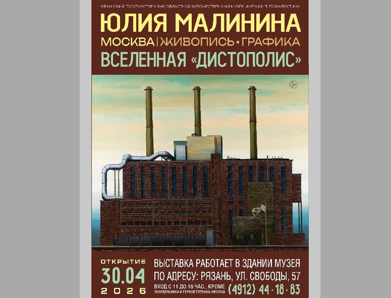 Серия "Дистополис", начатая в 2017 г., прирастает все новыми произведениями: в экспозиции представлено более пятидесяти работ автора, среди которых и произведение, созданное специально для выставки в Рязанском художественном музее.