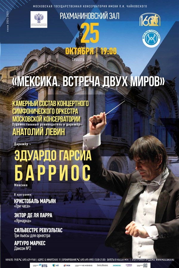 Эдуардо Гарсия Барриос познакомит московских слушателей с самобытной музыкой своей родины. Прозвучат "Три часа" Кристобаля Марьяна, "Ярмарка" Эктора де ла Парры, Дансон № 2 Артуро Маркеса и Три пьесы для оркестра Сильвестре Ревуэльтаса.