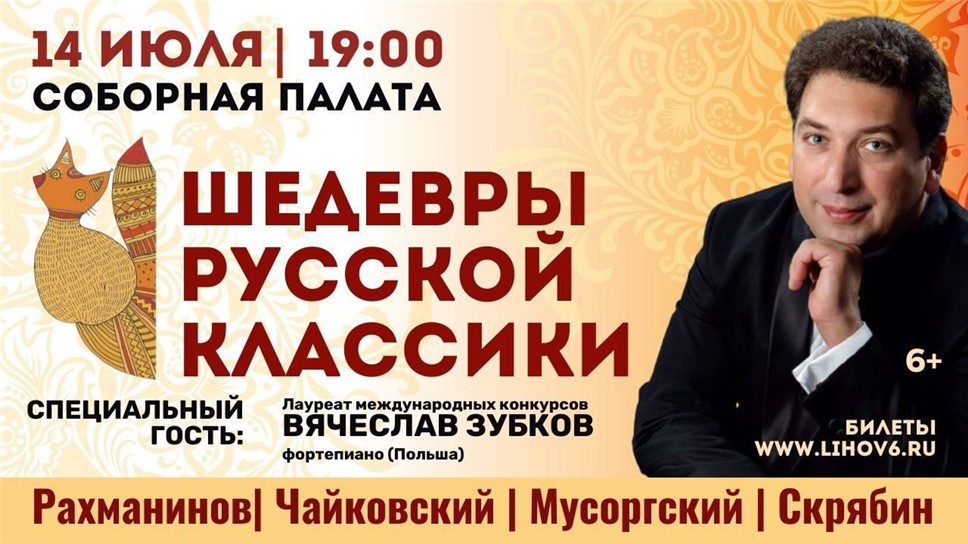 Уже завтра, 14 июля, в Соборной палате пройдет концерт "Шедевры русской классики", специальным гостем которого станет лауреат международных конкурсов, пианист Вячеслав Зубков (Польша). Зубкова называют одним из крупнейших пианистов нашего времени.