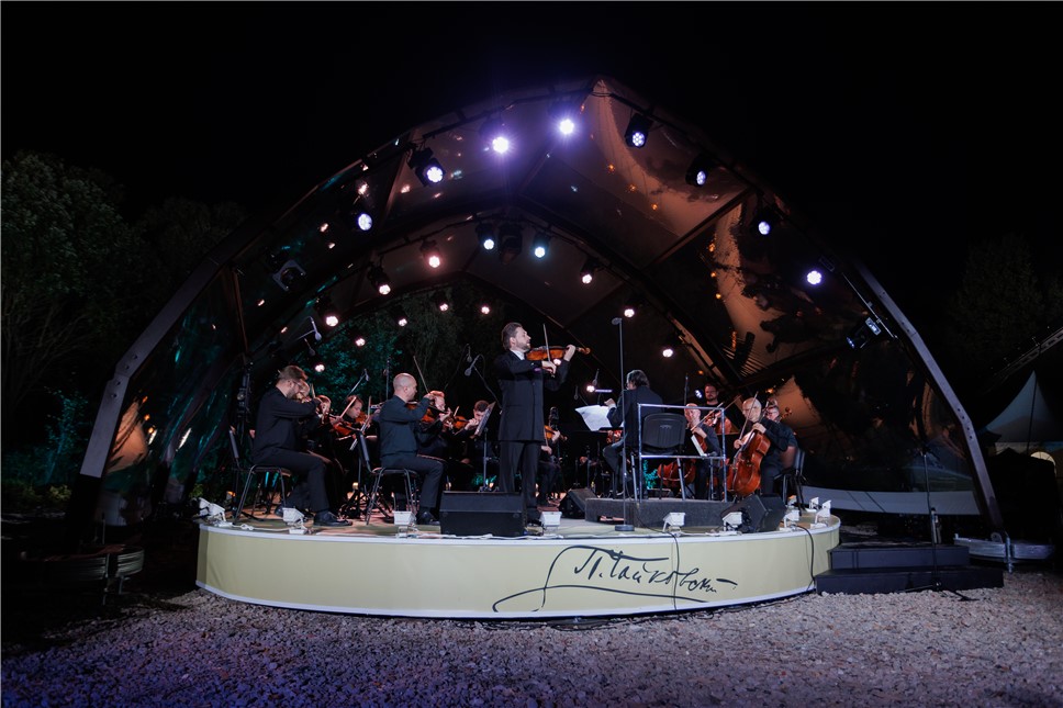 Музыка нашего гения звучала в сопровождении уникальных световых и визуальных эффектов. Многочисленные цикады на берегу реки Пахры аккомпанировали музыкантам. Завершился вечер чудесной Серенадой для струнного оркестра до мажор в проникновенном исполнении "Солистов Москвы".