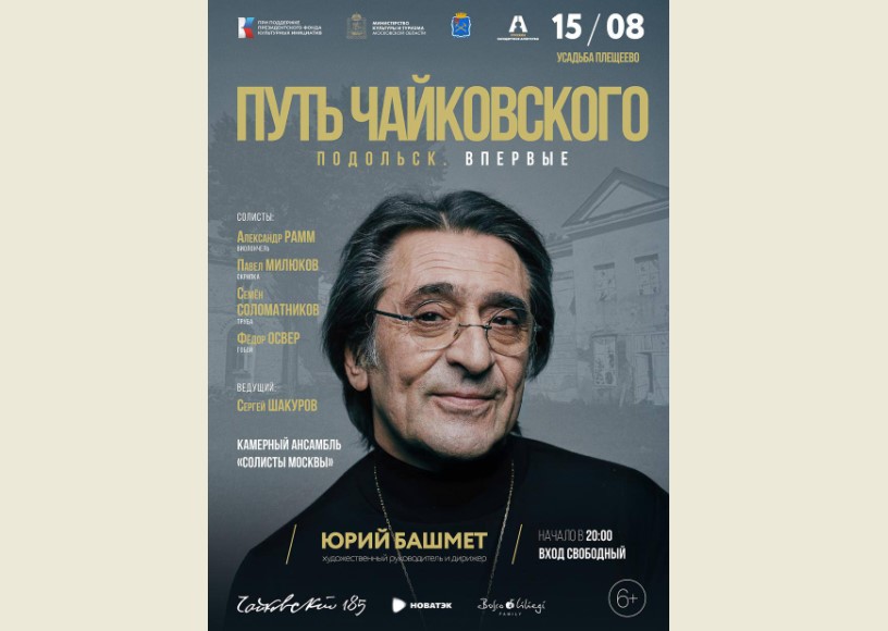 "В этом году при поддержке Президентского Фонда Культурных Инициатив мы продолжаем и сильно расширяем наш масштабный проект "Путь Чайковского". В год 185-летия Петра Ильича специальные концерты проекта пройдут в Клину, Алапаевске, Воткинске, Владимирской, Тамбовской областях, Москве и Санкт-Петербурге. 15 августа в рамках "Пути Чайковского" впервые пройдет концерт в Подольске в Усадьбе Плещеево. Концерт будет посвященный творчеству нашего великого композитора. Замечательные российские солисты совместно с Камерным ансамблем "Солисты Москвы" под моим управлением сыграют произведения П.И. Чайковского. А легендарный российский актер Сергей Шакуров, прочтет отрывки из дневников и воспоминаний Петра Ильича", — сказал Юрий Башмет.