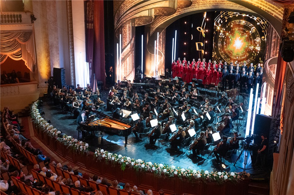 Государственная академическая хоровая капелла России имени А.А. Юрлова заявила о себе в открывающем и завершающем номерах концерта, окрасив вечер ещё большей торжественностью. "Песнь судьбы" для смешанного хора и оркестра Иоганнеса Брамса на стихи романтика И.Ф. Гёльдерлина и Фантазия для фортепиано, хора и оркестра Людвига ван Бетховена на текст К. Куффнера обрамили концертные выступления, переплавив начальный брамсовский трагизм в завершающий бетховенский апофеоз радости. Денис Мацуев, наше "фортепианное всё", усилил своей энергией общий поступательный посыл Гала-концерта.