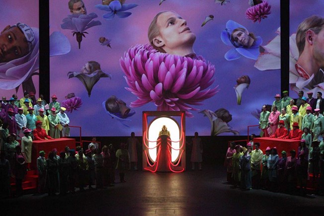 Речь идет о новой версии оперы Джакомо Пуччини "Турандот". В ней художники арт-группы AES+F Татьяна Арзамасова, Лев Евзович, Евгений Святский, Владимир Фридкес выступили сценографами и соавторами режиссера Фабио Черстича. Действие разворачивается на фоне мультиэкранного видео. Премьера состоялась в январе прошлого года в Палермо. Опера выдержала несколько показов в Италии. В Москву привезут запись спектакля, сделанную в театре Комунале в Болонье.