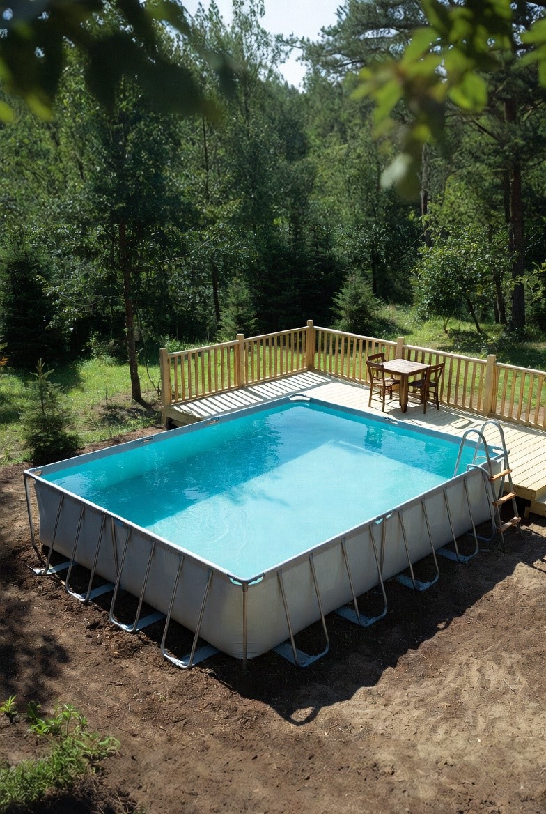 - Плюсы: доступный входной бюджет, быстрый монтаж бассейна, минимум строительных работ, удобство для дачи.