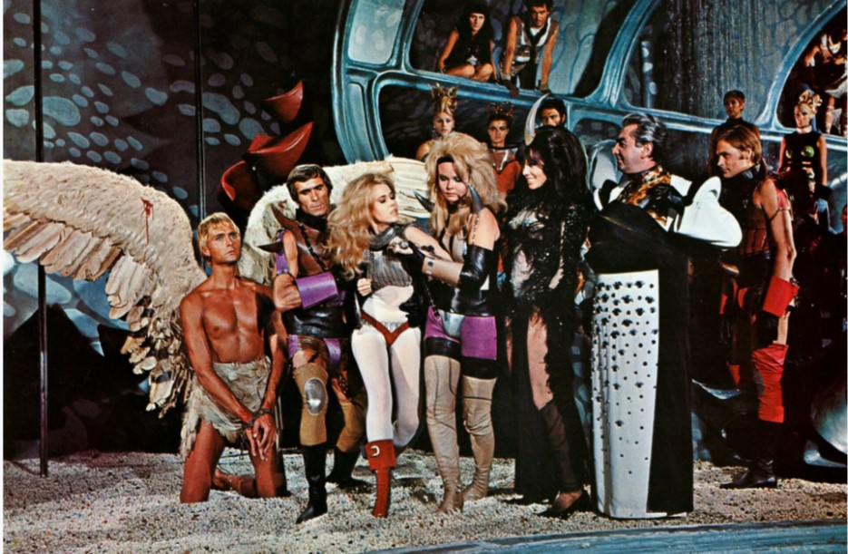 Одежда стала более обтекаемой и минималистичной. Мини-платья с округлыми вырезами, просторные комбинезоны и формы, напоминающие скафандры, подчеркивали идею о будущем, где человек и техника сливаются в едином стиле.