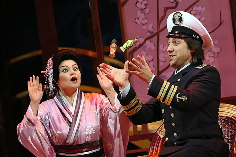 Трагедия Джакомо Пуччини в которой спорят Запад и Восток. Американский лейтенант Пинкертон обручается с гейшей, но вскоре отплывает из Японии и возвращается туда с женой-американкой: в Соединенных Штатах иностранные браки недействительны. Со стороны кажется, что действие на сцене происходит без суеты. Но, вместе с героями оперы зрители пристально всматриваются и вслушиваются в происходящее, боясь пропустить что-то важное.