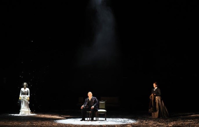 Конечно, видеть эти мысли как ядро концепции постановщика удивительно. Ибо уж кто-кто, а Андрей Прикотенко до этого момента в пропаганде традиционных ценностей замечен не был (уж скорее наоборот он выступал за достаточно рискованные эксперименты со своей судьбой; достаточно вспомнить его спектакль по "Мадам Бовари" в Театре Наций – при определенном сходстве фабулы двух великих романов, нет более контрастных трактовок).