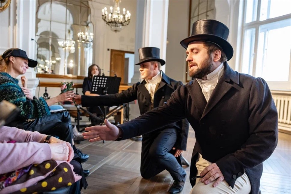 Между ними разыгрываются различные сценки, чтение стихов, песни, танцы. Все, разумеется, связано с Пушкиным.