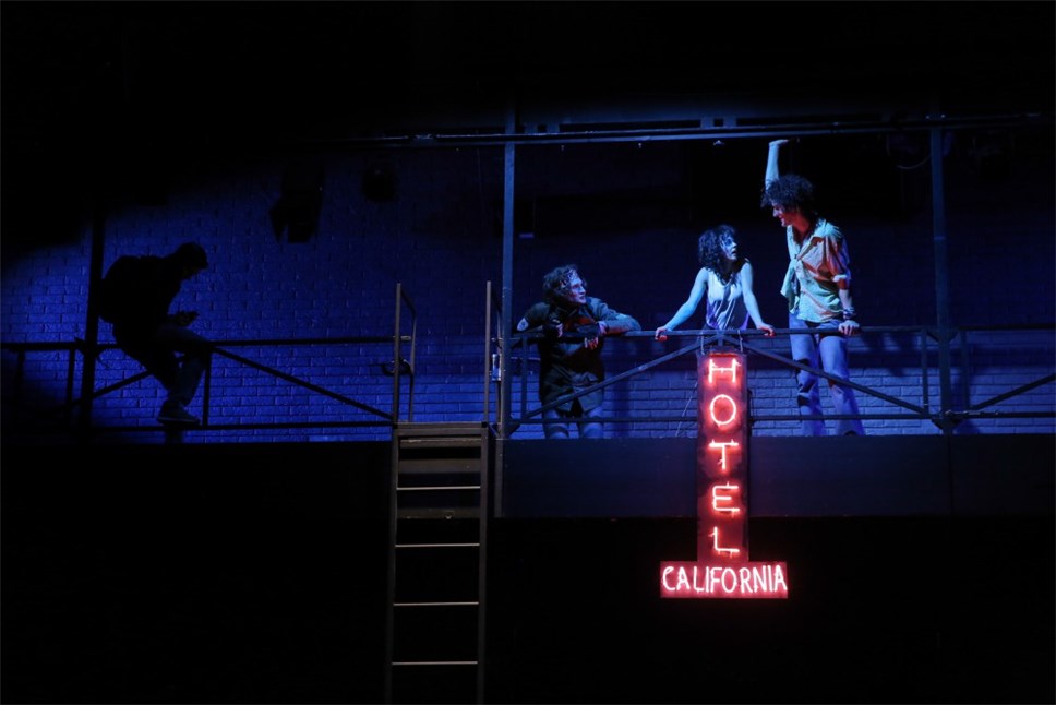 Режиссер и драматург Саша Денисова виртуозно рассказывает о той эпохе – эпохе великих идеалистов, мечтателей и пацифистов. Вместе с Шифрой Каждан и Ксенией Перетрухиной, она умело воссоздает атмосферу тех лет, помещая зрителей в отель "Калифорния", условное место, пропитанное духом рок-н-ролла, свободной любви и ощущением бесконечной важности жить и творить "здесь и сейчас".