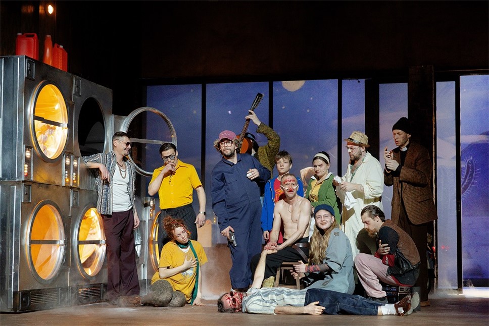 И, конечно, потрясающий финал. Дон Кихот залезает в стиральную машину, откуда вылезает уже нормальным актером, высказывает "пару ласковых" относительно Дон Кихота уже нормальным голосом, его обнимает Дульсинея, которую мы наконец-то видим, и они вместе уходят. В общем, хэппи-энд Голливуд-стайл! В любом другом случае – это выглядело бы вставным зубом, но тут нет. Постановка сделана так, что в ней и логично, и нелогично абсолютно все.