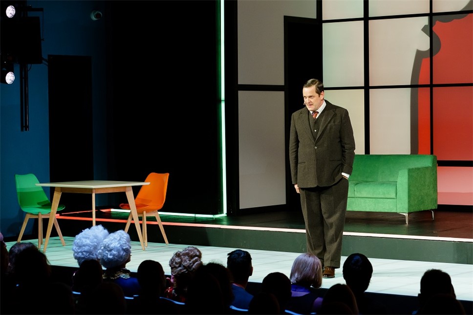 Я уверен, что Погодин пытался, как положено было тогда, вдохнуть во все эти, прямо скажем, банальности некий психологизм. Усложнить рисунок. Богомолов, напротив, от всякого психологизма отказывается, усиливая схематизм. Перед нами — постер оттепели. Яркая картинка-комикс. И уж если грузин — то с ярко выраженным акцентом и энергичными жестами. Если талантливый физик — то с глубокомысленным видом и неприспособленностью к быту… И так со всеми персонажами.