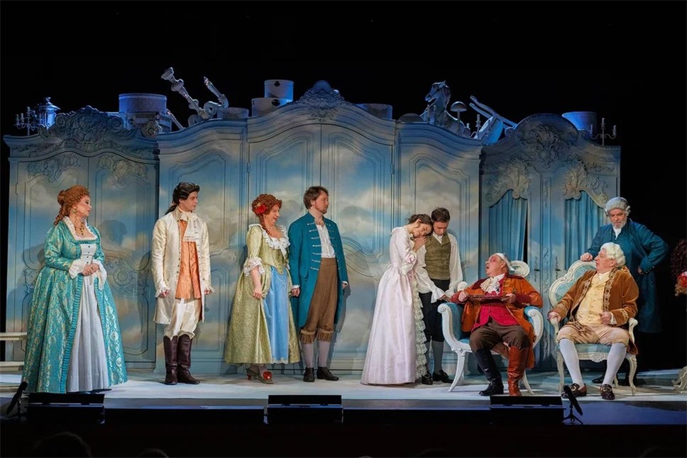 Сам спектакль получился легким, размеренным. Камерная атмосфера малой сцены дает ощущение, что находимся мы где-то при дворе, мы не современные люди, а зрители 18 века, и сама императрица наблюдает не только за тем, что происходит на сцене, но и за нами тоже.