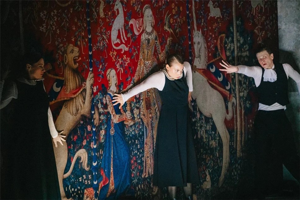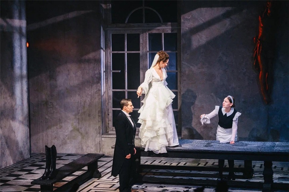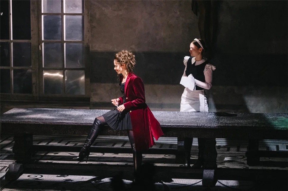 Начинается действие, и сцену сразу заполоняют слуги графского дома: трое молодых мужчин и три девушки. Они чистят хозяйские сапоги, суетятся и занимаются уборкой помещения, делая это в форме яркого и необычного пластического хореографического этюда. Выясняется, что режиссер решил добавить в свой спектакль хореографию в исполнении профессиональных балетных артистов. Эти шесть слуг будут присутствовать на сцене практически весь спектакль, как наблюдатели и неравнодушные свидетели, а зачастую и участники происходящего, которые олицетворяют общество и его отношение к поступкам главных героев.