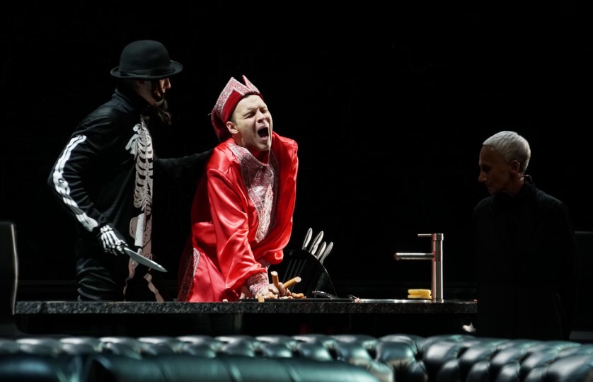Ведь не только Зосима и Смердяков "совмещены", совмещен Карамазов-отец и черт. И когда он в самом финале поет издевательски "Я люблю тебя, жизнь" (классическая провокация для зрителей – подпеть так и тянет; но кому – черту!), становится жутковато. Что, и правда победил? Вспоминая сытый 2013 год, давайте признаемся: многим тогда казалось именно так. Многие с этим победившим чертом (назвать ли его торжеством либеральных ценностей, победой массовой культуры, триумфом буржуазной сытости и т.п.) искали союза и без труда находили.