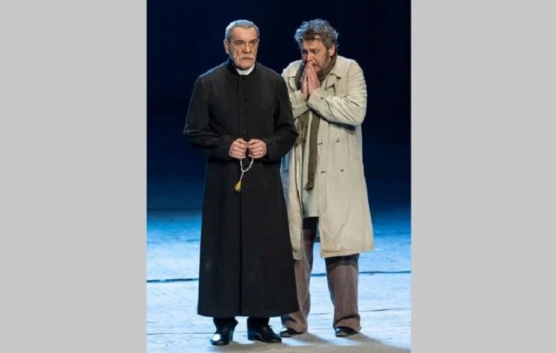 В постановке участвует целая плеяда звезд: Максим Аверин (Бургомистр), Александр Домогаров (Петер, Лавочник), Ольга Богданова (Миллиардерша), Николай Козак (учитель). И они сыграли великолепно, ярко.