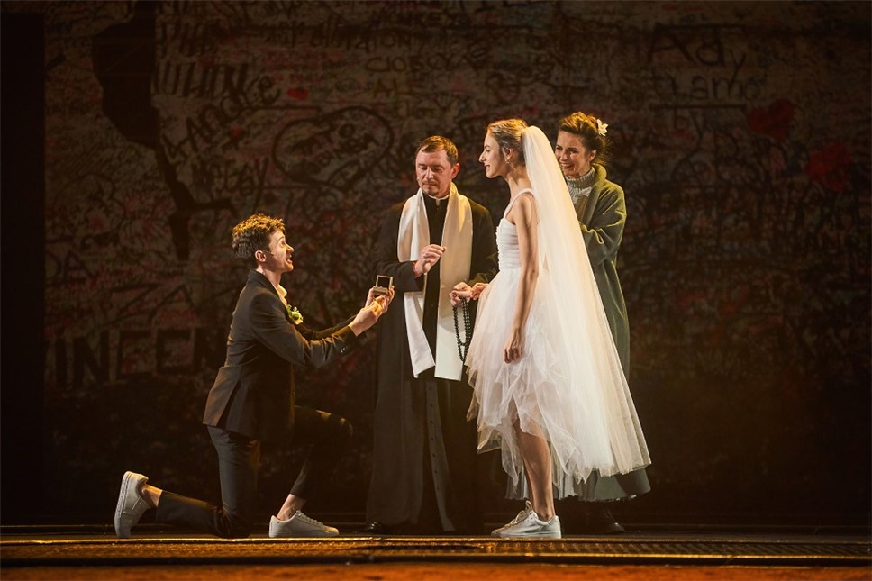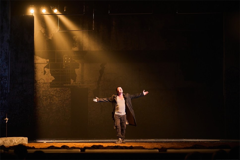 И здесь все вопреки – музыка становится в один ряд с персонажами, создавая свой рваный ритм, свое пространство. Музыка Евгении Терехиной и пронзительные тексты Наталии Макуни разрывают привычное пространство драмы, переводя историю в новый временной пласт, приближая к нам, сегодняшним. Отец Лоренцо спорит с Богом и категорически бьет в барабан, и даже дождь падает вверх, вопреки всем законам мирозданья.