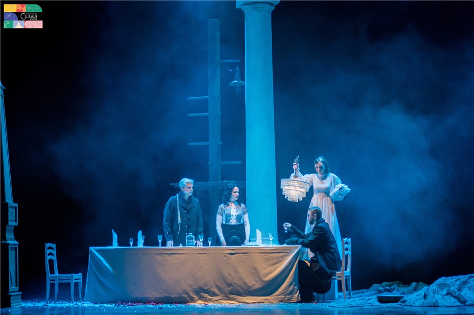 Ещё одна важная часть декораций — дым, то ядовитый зелёный, то серый, как плотное грозовое небо. Из звуков — низкий неприятный гул и непонятные удары за пределами сцены. Под стать обстановке и хозяева — Вукол Бессудный и жена его, Евгения, от которых с первых фраз и жестов веет опасностью. Немудрено, что в таком "уютном" трактире гостей немного. Да и те заезжают не грибочков отведать.