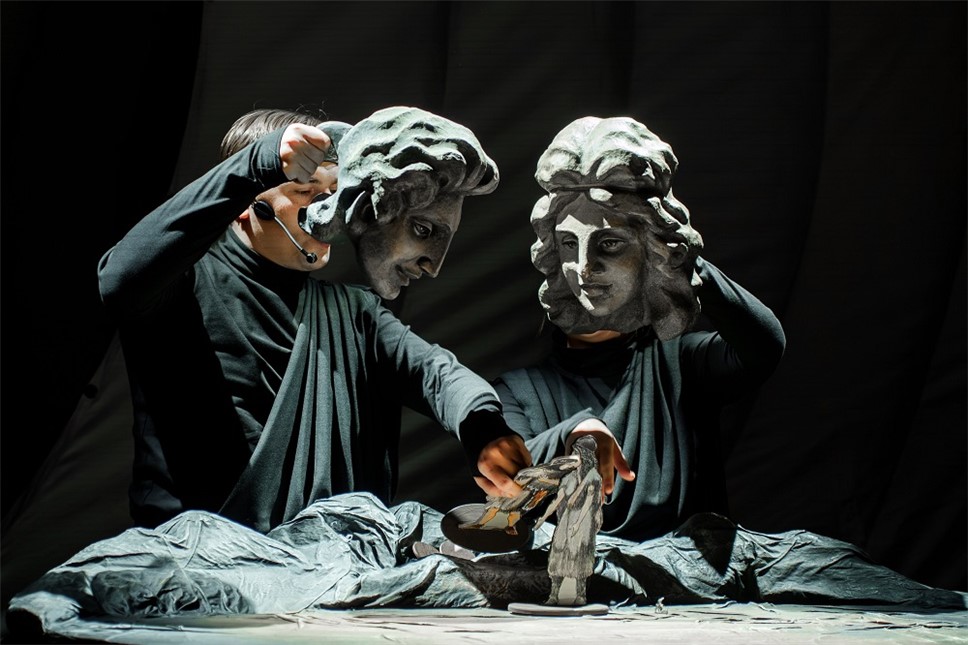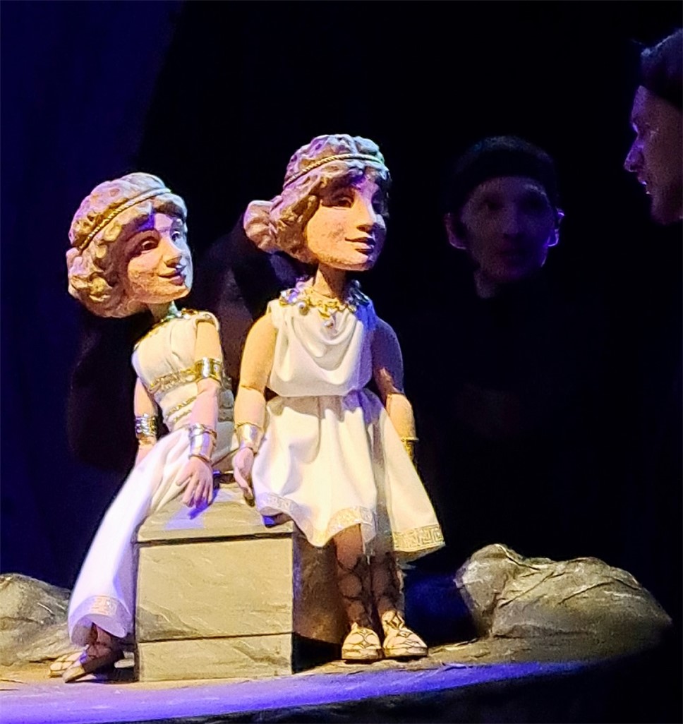 Художником спектакля выступил Тимур Гуляев. Привычные образы статуй греческих богов оживают на наших глазах. Они величественны и прекрасны. Но статуям не дано любить, надеяться, гневаться. А вот у кукол на сцене это прекрасно получается. Необычные куклы, изображения богов рождаются, кажется, на наших глазах – актер берет голову статуи, подбирает ей тело, и уже огромная паркетная кукла, которую водят два, а то и три артиста, оживает: шутит, ревнует, начинает принимать решения, спорить, ошибаться…