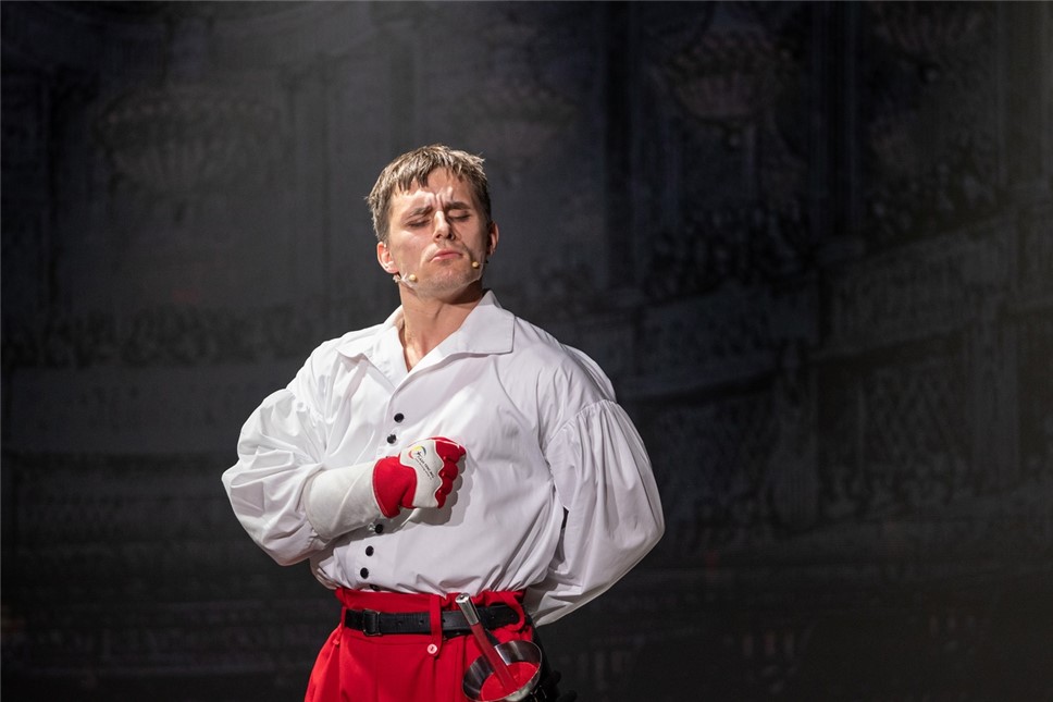 Для начала – немного истории. Драма в стихах "Сирано де Бержерак" была создана французским поэтом Эдмоном Ростаном в 1897 году под авторским определением "героическая комедия". В оригинальном тексте пять действий, но в мюзикле – всего два, он идет 2 часа 30 минут с антрактом. На русском языке пьеса бытует в трех переводах: Т. Щепкиной-Куперник, В. Соловьева и позднейшем – Елены Баевской и Михаила Яснова 1997 года, максимально близком к оригиналу (в частности, там сохраняется александрийский стих, важный для Ростана). Но в мюзикле многие партии солистов написаны либреттистом, а не Ростаном.