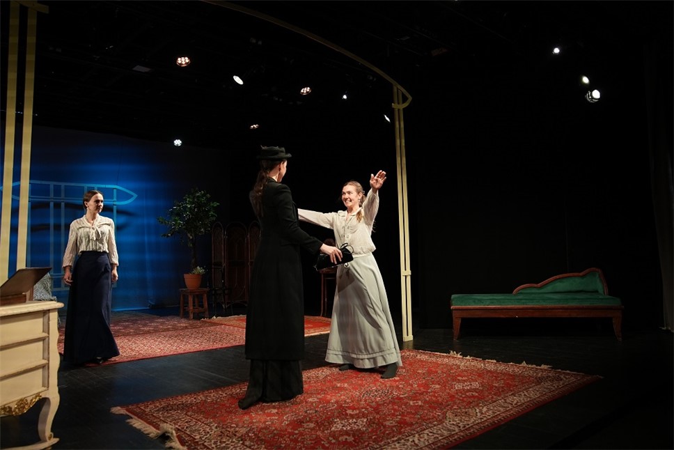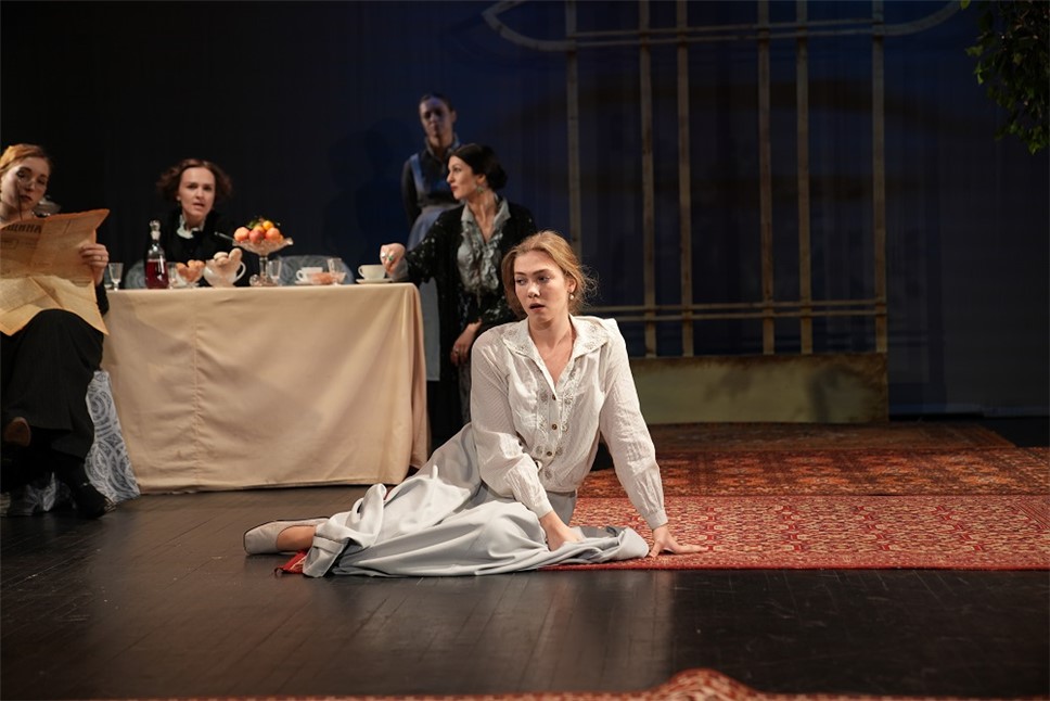 Спектакль идет в крайне медленном темпе, очень много сцен без слов. Вот Светлана просто сидит за столом, вот она просто смотрит в зал. И хочется крикнуть: "Остановись, мгновенье, ты прекрасно!" Потому что просто на стоящую актрису можно смотреть буквально бесконечно. Она – как Ермолова на знаменитом портрете Серова.