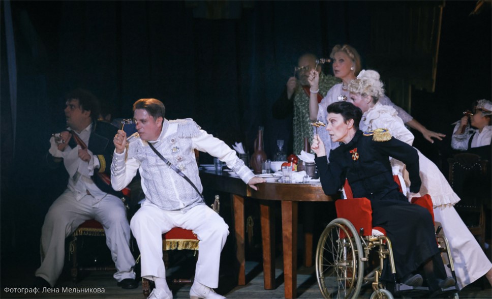Поэтому так ли важно, о чем речь? Ну ладно, скажу в нескольких словах. Середина девятнадцатого века. Тифлис. Молодая Елена Блаватская, этакий бесенок в юбке, вносит сумятицу своим эксцентричным поведением и идеями в среду аристократических родственников и их знакомых. В этом кругу – будущий глава кабинета министров Сергей Витте (в момент действия пьесы – еще ребенок). На месте поклонников Блаватской я бы за нее обиделся (характерно, что автор сочинения в программке называет ее "международной авантюристкой"; смело). Да и не все ли равно, как зовут эту жизнерадостную даму, устраивающую чехарду среди родни к восторгу публики?