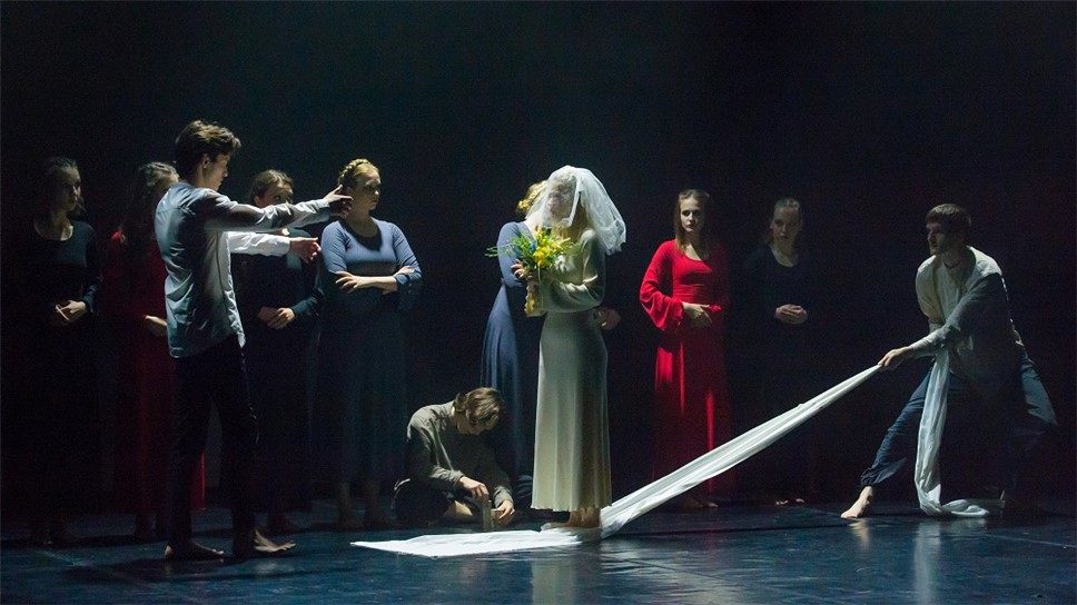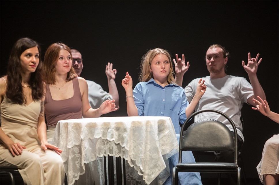 - То, что мы сделали – это не совсем спектакль, это опыт коллективного рассказа, – говорит Брусникина. – Мы работали над умением в монолите текста построить диалог, проработать существование каждого персонажа. Мы делали много этюдов, разговаривали, занимались движением текста и тем персонажей.
