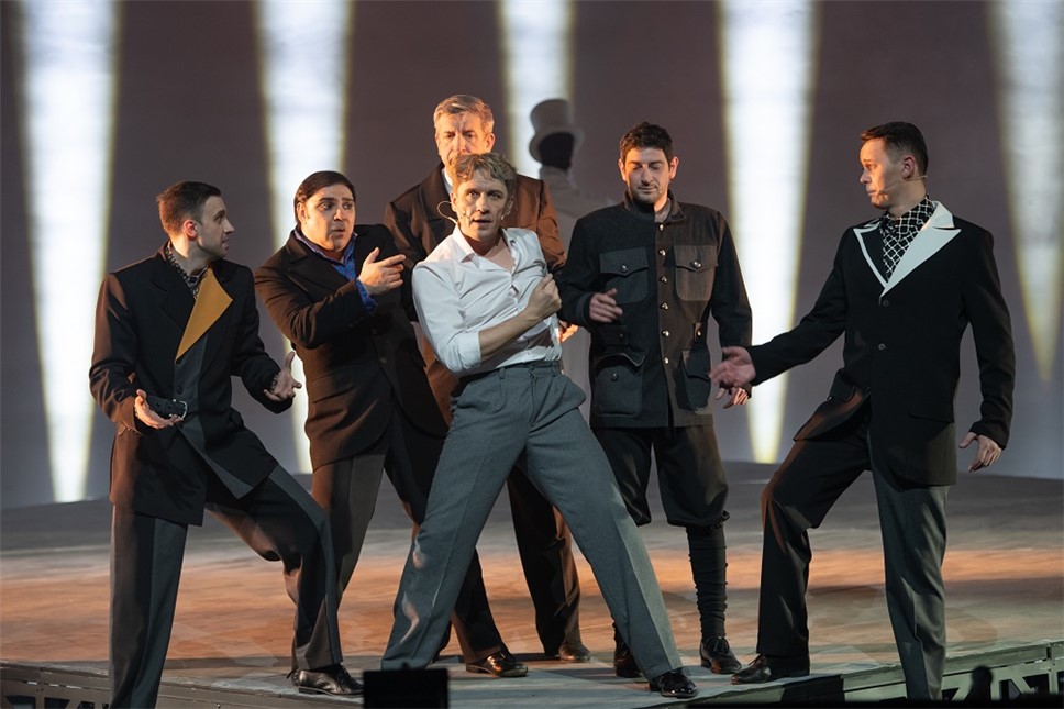 Да, эпоха Есенину выдалась непростая. Чтобы отобразить ее, режиссер занял всех солистов труппы, хор и балет. Артисты прекрасно справляются с непростой музыкой, замечательно поют, синхронно перемещаются по сцене, создавая красивые картинки, которые порой радуют. Но ничего не рассказывают.
