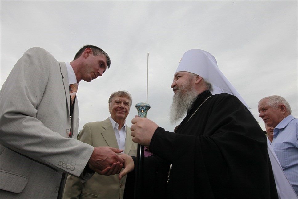Митрополит Ставропольский и Невинномысский Кирилл, народный артист РСФСР Анатолий Кузнецов и Денис Кирис фото архив автора