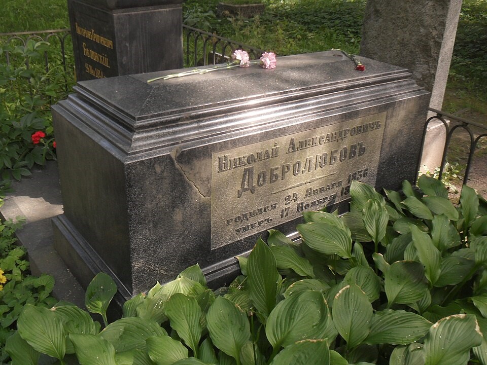 Упокоился Николай Добролюбов после смерти осенью 1861 года на Волковском кладбище в Петербурге рядом с могилой Виссариона Белинского. Часть кладбища вокруг их захоронений стала популярным местом упокоения других русских писателей и литературных критиков и практически официально стала зваться "Литераторскими мостками". Мне очень жаль, что, когда я посещала некрополь, могилы двух видных революционно-демократических критиков были на реставрации. Надеюсь, еще удастся возложить цветы тому и другому. Не столько за революцию, сколько за критическую мысль. Так или иначе, но они в нашей стране ее "разбудили", вызвав к жизни, в конечном итоге, наш критический цех.