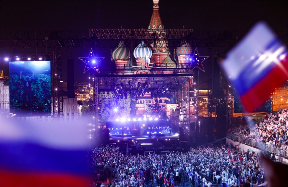 Концерт на Красной площади был намечен на вечер, для него выстроили открытую сцену перед храмом Василия Блаженного. Вел все мероприятие спортивный комментатор Дмитрий Губерниев. "На разогреве" выступали группа "123 полк", певица Mia Boyka и певцы Сергей Войтенко и Никита Осин.