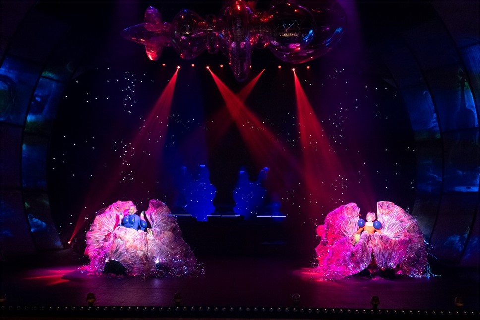 В буквальном смысле фантастическую атмосферу на сцене создала сценография Игоря Нежного и работа художника по костюмам Татьяны Тулубьевой. А футуристическую составляющую музыкального спектакля создали инсталляции и костюмы Саши Фроловой, художника самого широкого охвата, хорошо знакомой гостям "Геликон-оперы" по постановке оперы Моцарта